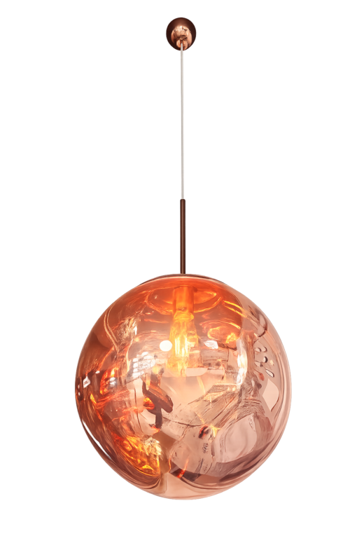 用一顆「玫瑰金琥珀球」把空間質感拉滿。琥珀煙燻玻璃球罩搭配玫瑰金金屬吊件/吸頂盤,點亮後透出柔和暖光與迷人反射光影,餐桌、吧台、玄關或臥室都超加分。
