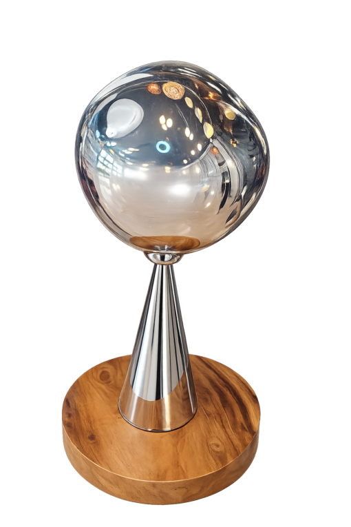 一顆鏡面銀球,把空間的光影收進來——低調但超有存在感的現代氛圍桌燈。