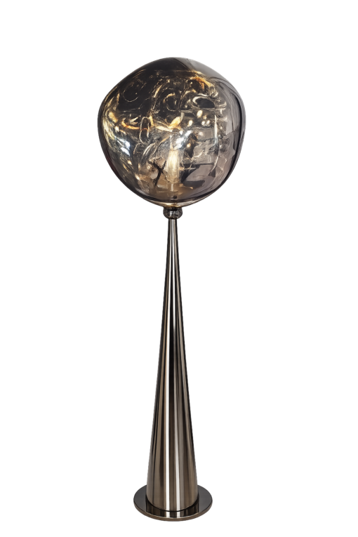 這款落地燈用「鏡面煙灰玻璃球罩」把光線變得更柔、更有層次;搭配鏡面金屬錐形燈身,整體像雕塑一樣乾淨俐落。放在客廳或店面角落,不用多裝飾就能拉出空間質感;開燈是氛圍燈,關燈也像藝術品一樣耐看。