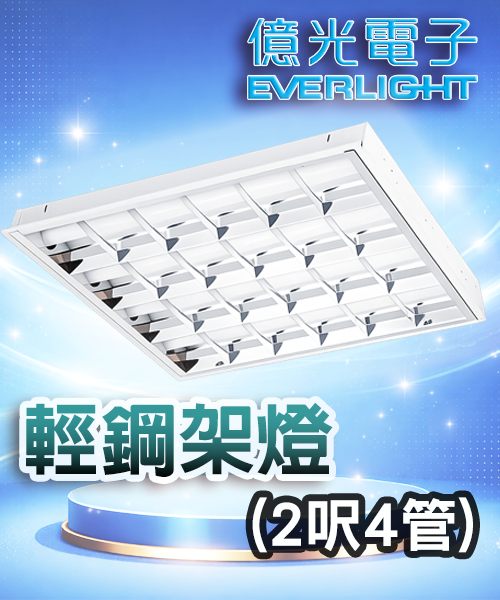 24W|5700K|3200lm 專為辦公室、教室與室內公共空間設計的 2 呎輕鋼架格柵燈(4 管),具備節能標章+環保標章雙認證,符合節能與綠色採購需求。採用防眩光格柵設計無頻閃光源,有效降低眩光與眼睛疲勞;同時無紫外光/降低藍光危害,長時間照明更舒適安心,亦可搭配商業服務業節能設備補助專案。